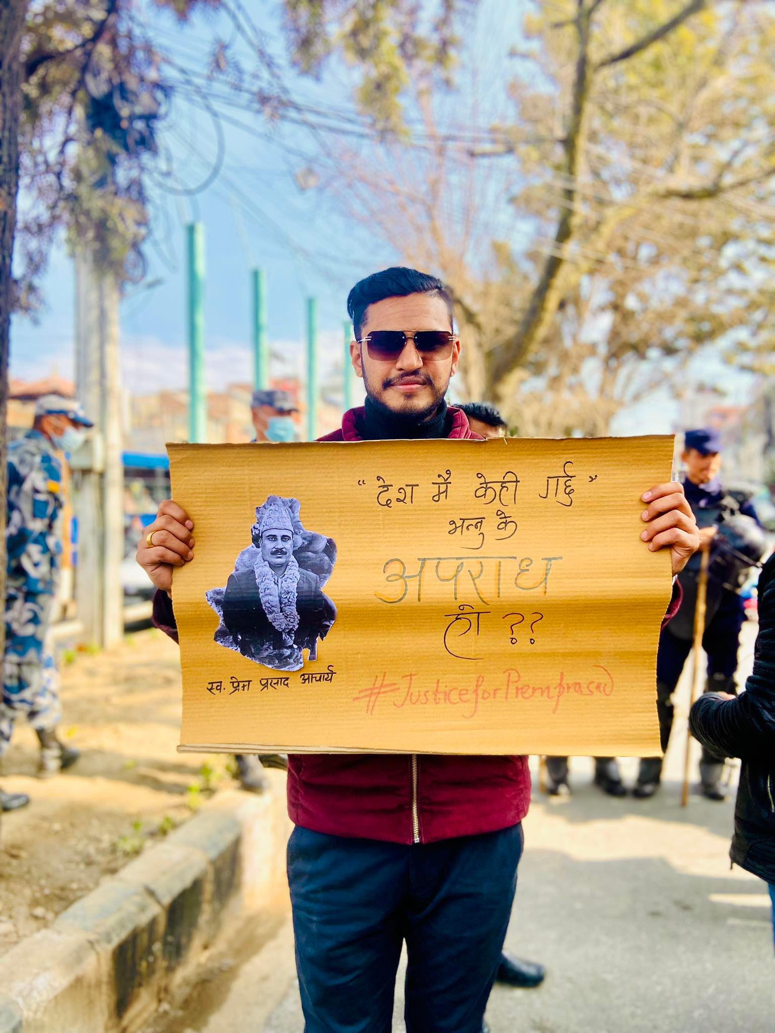 आचार्यको उपचारका क्रममा बुधबार बिहान मृत्यु भएको थियो। युवाहरूको स्वस्फूर्त आह्वान बाट बुधबार माइतीघर मण्डलमा भेला भई आचार्यको न्यायका लागि प्रदर्शन भएको हो। माइतीघर मण्डलामा दिउँसो १ बजे भेला भएका युवाहरुले केही समय धर्ना राखी माइतीघर बाट प्रदर्शन गर्दै बानेश्वरतर्फ गएका थिए। उनीहरूले बानेश्वरमा मौन धारण गर्दै आचार्यलाई श्रद्धाञ्जलीसमेत दिए ।